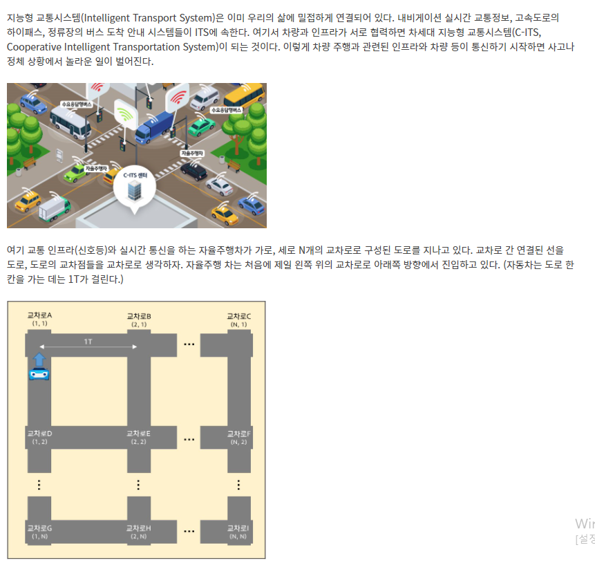 문제 이해 자체가 조금 복잡한 문제이다. 현대자동차는 매번 약간 까다로운 구현을 요하는 문제를 내는 것 같고, 문제 이해도 쉽지 않은 것들이 다소 있다. 이 문제도 처음 봤을 때 이해하는데에만 시간이 꽤 걸렸다. 대충 말하자면 각 교차로마다 정해진 신호등이 4개씩 있는데 시간에 따라 다른 신호등을 이용할 수 있다. 출발점과 출발 방향, 정해진 시간이 주어진 경우 해당 차량이 갈 수 있는 교차로는 최대 몇개일까? 를 구하면 된다.