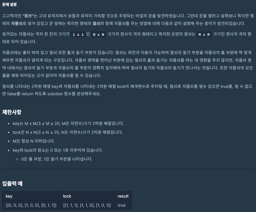 자물쇠와 열쇠 - 2020 카카오 공채 (python)