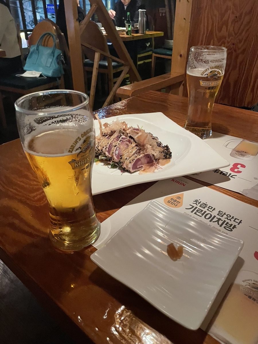 기린이치방 각9000원. 솔직히 그냥 하이볼 마셔도괜찮을거같습니다. 기린이치방은 크게 특색을 못느껴서요. 혹시 기린 이치방 좋아하는 분 계시면 그 이유좀 알려주세요. 저도 다음엔 그런 맛을 느껴보려고 노력하겠습니다.