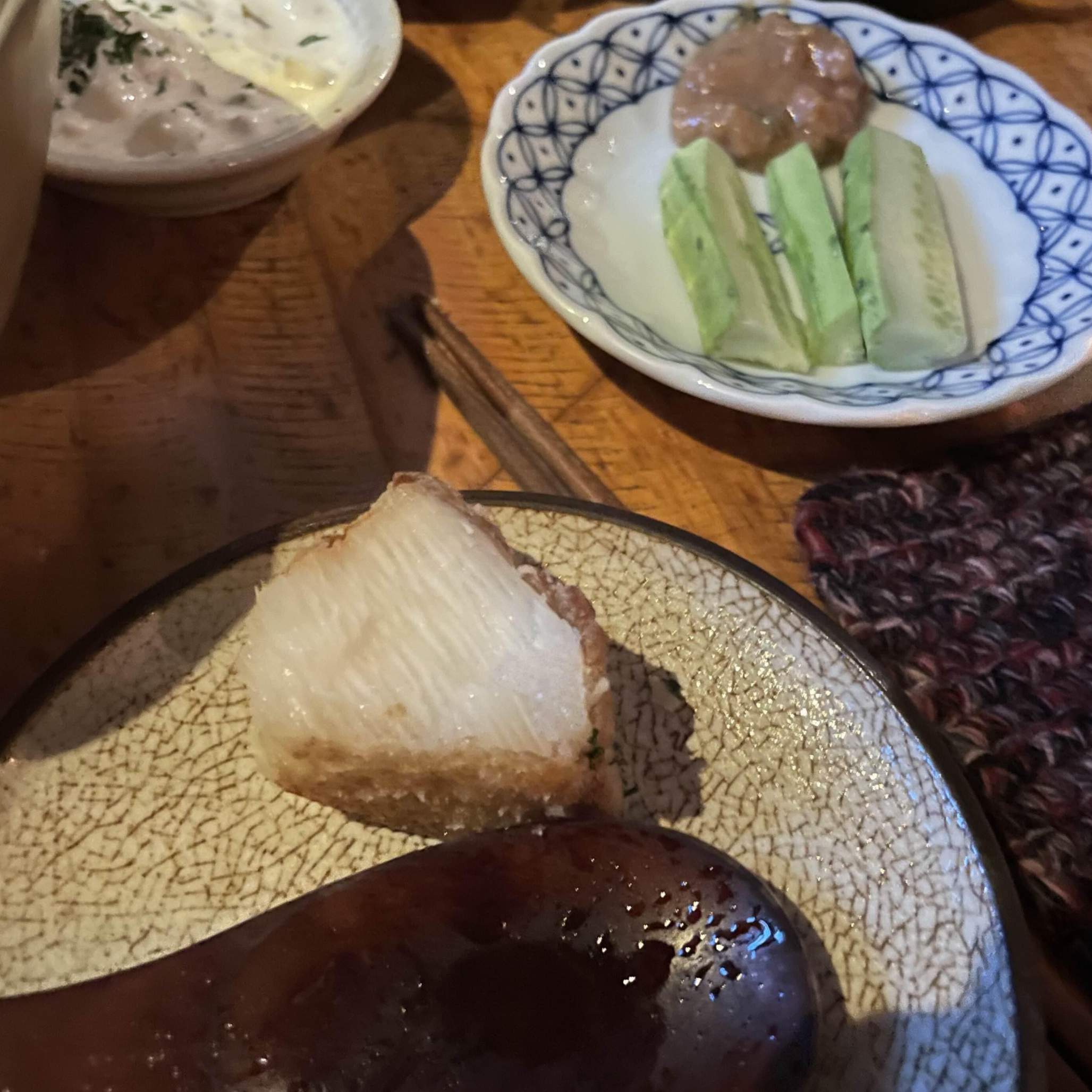 안주를 총 세개 시켰는데 가장 처음으로 마튀김이 나왔습니다. 사실 조금 건강한 느낌도 있을 것 같고, 다른 술집에 흔하게 있는 메뉴는 아니기도 하고, 맛있을 것 같아서 시켜봤습니다. 옆에 타르타르 소스가 같이 나와서, 찍어먹으라고 안내받았어요.