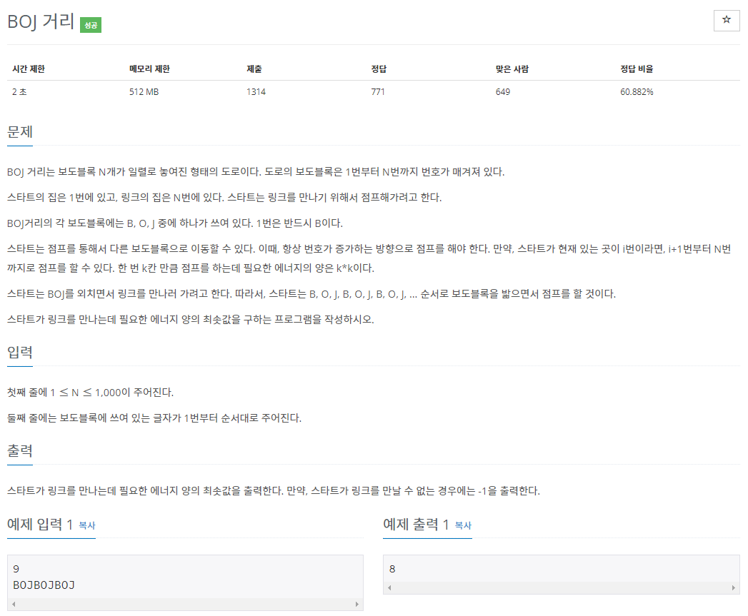 1. 우선 BOJ순서대로만 점프할 수 있으므로 딕셔너리에 J->O, O->B, B->J를 호출할 수 있게 키/값으로 저장해둔다.