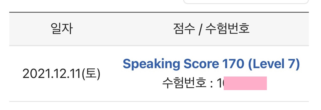 1. 어제 토익 스피킹 결과가 나왔다. 지난주 토요일 오전 11:30에 봤으니까 꽤 금방 나온편이다. 5일만에 결과가 나온다. 사실 원래 내가 영어를 못하는게 아니라서 레벨8을 예상하고 시험을 보러 갔었다. 뭐 그렇게 자신감 넘치냐고 할지도 모르지만, 누가 나한테 잘하는게 있냐고 물어보면 그나마 잘한다고 자신있게 말할 수 있는게 영어였던 나- 라서, 2주정도 공부하면 금방 레벨8은 나올 줄 알았다.